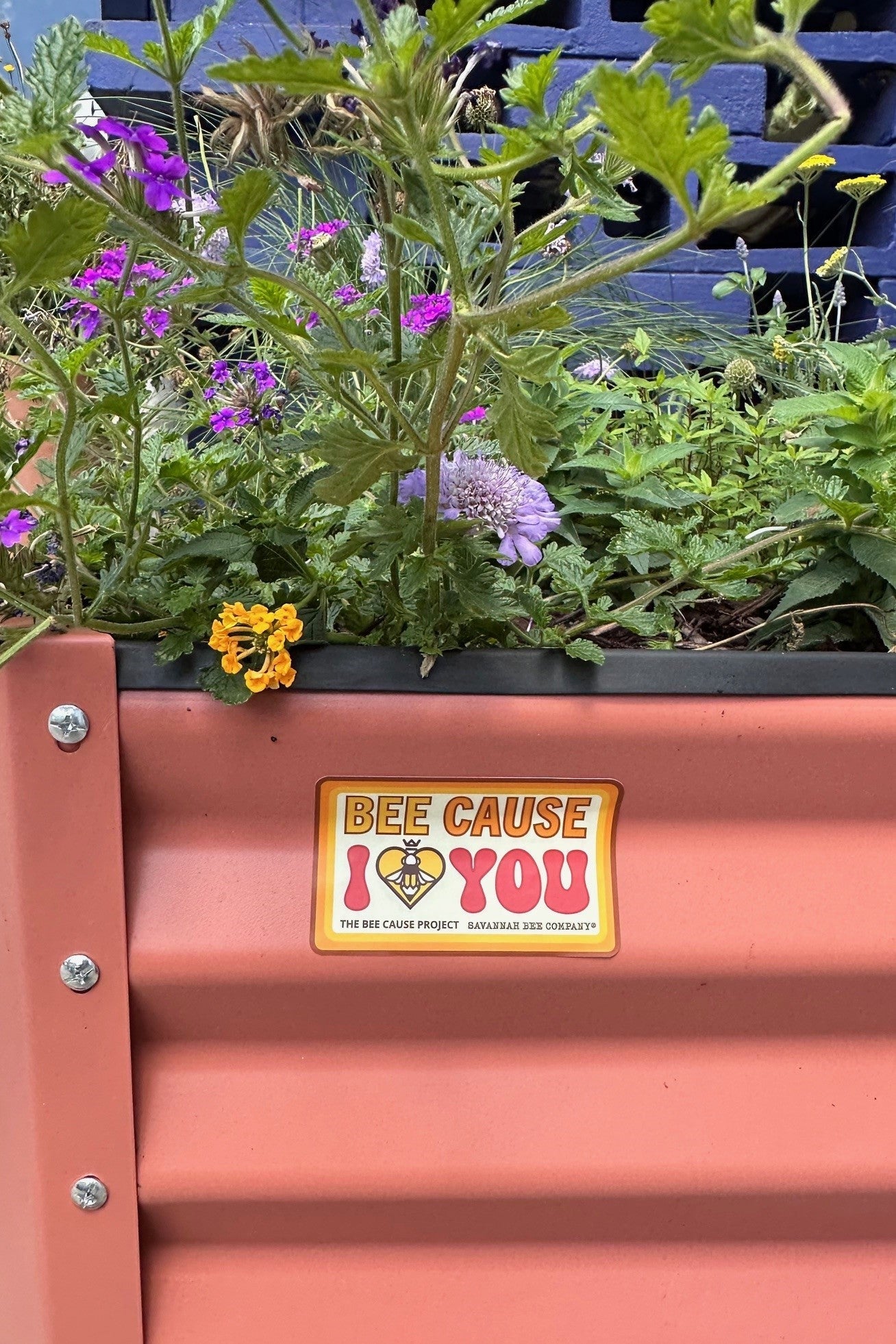 Biene, weil wir dich lieben! Unser neuer Aufkleber feiert unsere gemeinnützige Organisation, die Bienen-Ursache-Projekt, die Beobachtungsstöcke in Grundschulen einsetzt, um zukünftige Generationen über die Bedeutung von Bienen für unseren Planeten zu unterrichten. Außerdem ist es super süß. Ein Aufkleber mit einer Mission!