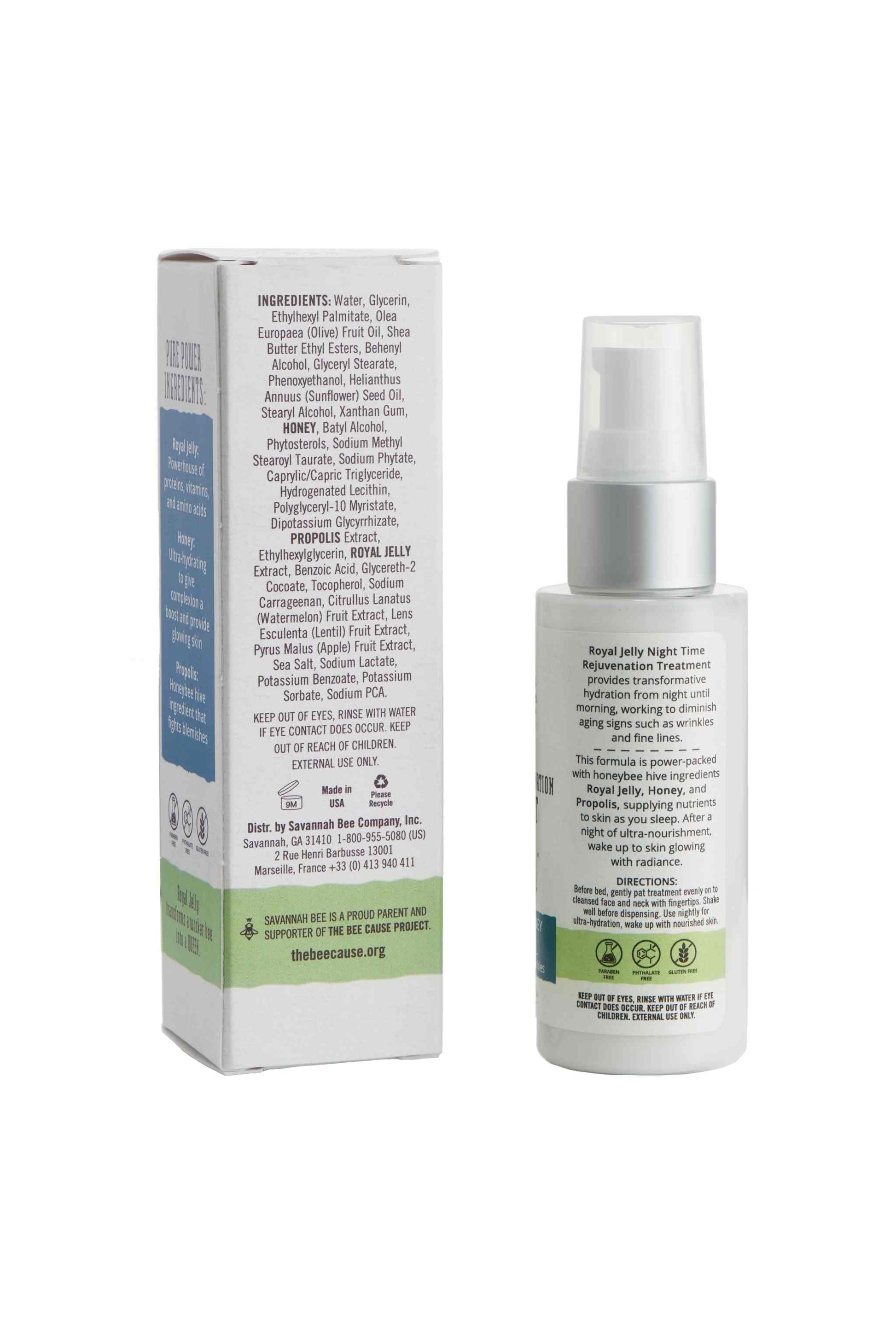 Die Verjüngungsbehandlung von Royal Jelly Night Time bietet von Nacht bis zum Morgen transformative Flüssigkeitszufuhr und senkt sich daran, Anzeichen des Alterns wie Falten und feine Linien zu verringern. Unsere Formel ist mit drei HoneyBee Bienenstock-Zutaten gepackt: nahrhafte königliche Gelee, feuchtigkeitsspendendes Honig und Schutz von Propolis.