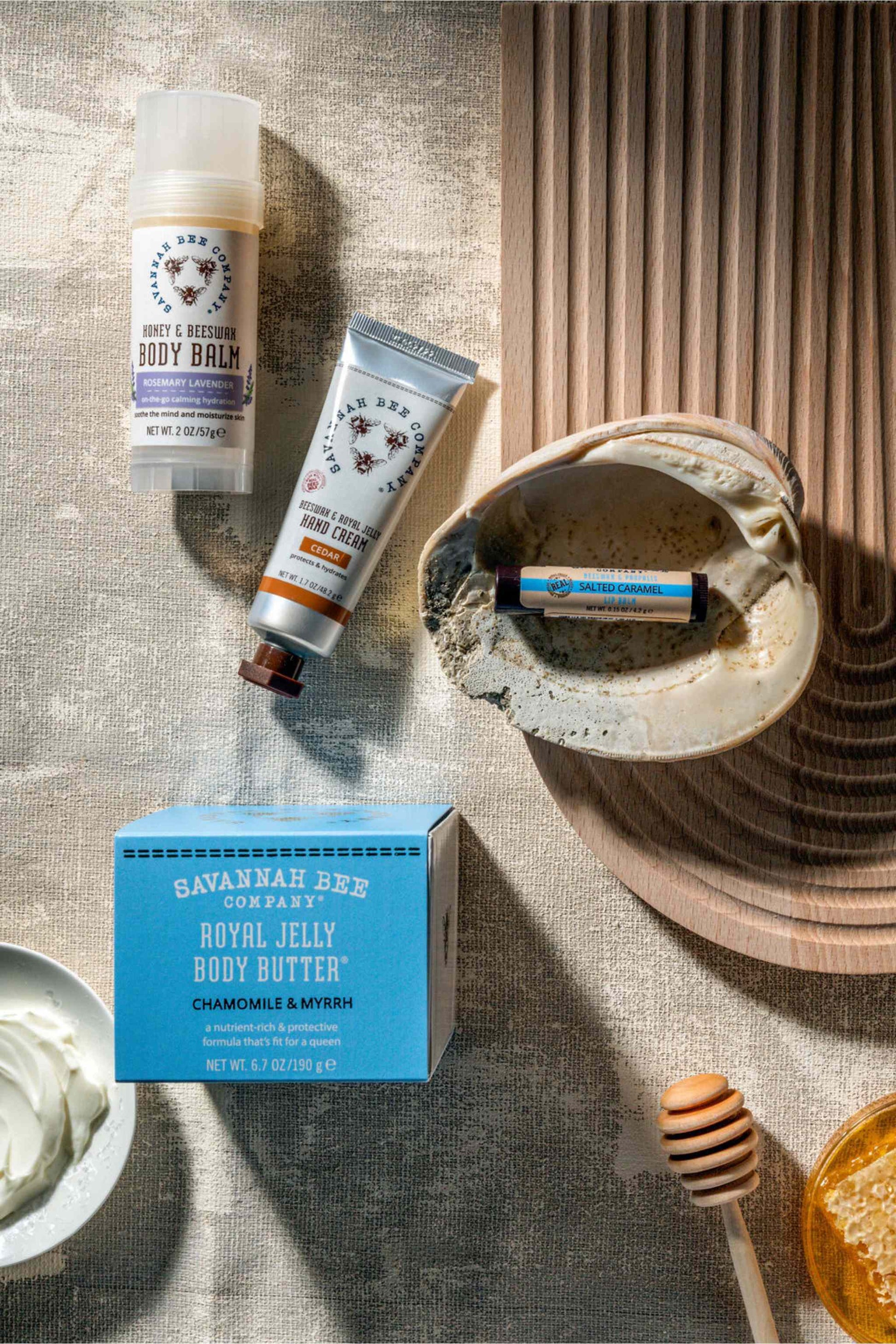 Bienenwachs, Honig, Kakaobutter und Kokosöl erweichen und versorgen Ihre Haut mit dringend benötigten Nährstoffen. Propolis schützt vor Bakterien und kämpft gegen Schönheitsfehler, während das königliche Gelee zutiefst mit Feuchtigkeit versorgt und zur Verbesserung der Hautelastizität arbeitet. Zusammen schützen diese Inhaltsstoffe Ihre Haut vor Dehydration und Entzündung für ein gesundes Mikrobiom.